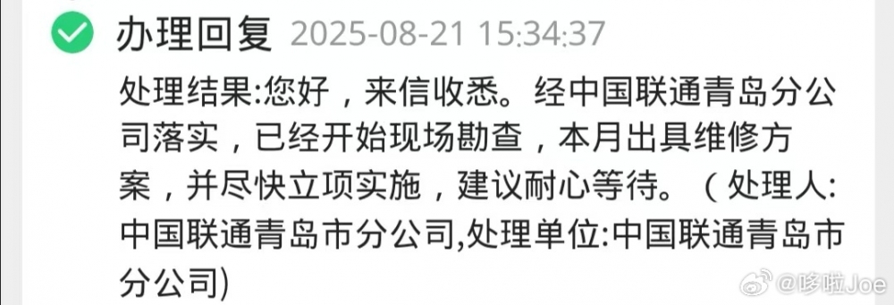朋友们,大家好!非常高兴来到《民生在线》栏目与广大网友进行沟通交流。首先我代表青岛联通全体员工,向广大客户及关心支持我们的各界朋友表示衷心的感谢。青岛联通从1893年胶澳电报房开设,历经邮电分营、四次改革重组,已走过130个春秋,传承邮电百年历史,赓续红色革命血脉,始终与改革同步、与时代同行。2025年,青岛联通积极响应国家政策,坚持融合创新,推动数智普惠,不断探索与青岛资源禀赋相结合,发挥联网通信、算网数智一体化运营服务优势,聚焦解决客户深层次问题,为广大市民提供智慧便捷的通信服务体验而不断努力。今天我们以“百倍用户 十分满意”为主题,认真听取广大朋友的意见和建议,我们也将不断提升客户感知,为广大用户提供高品质服务。