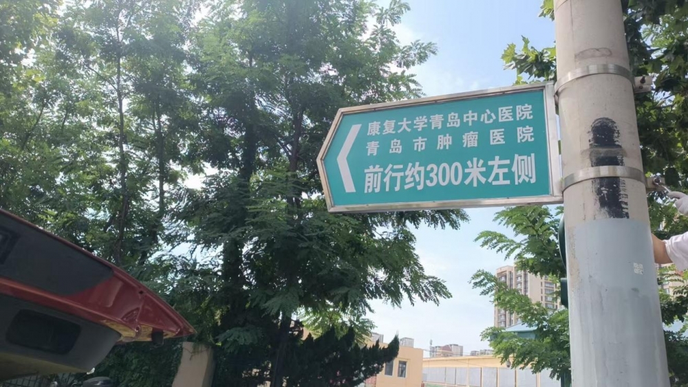 道路两边设置的医院路引院名应修改为新名称“康复大学青岛中心医院”而不是继续使用旧名称。