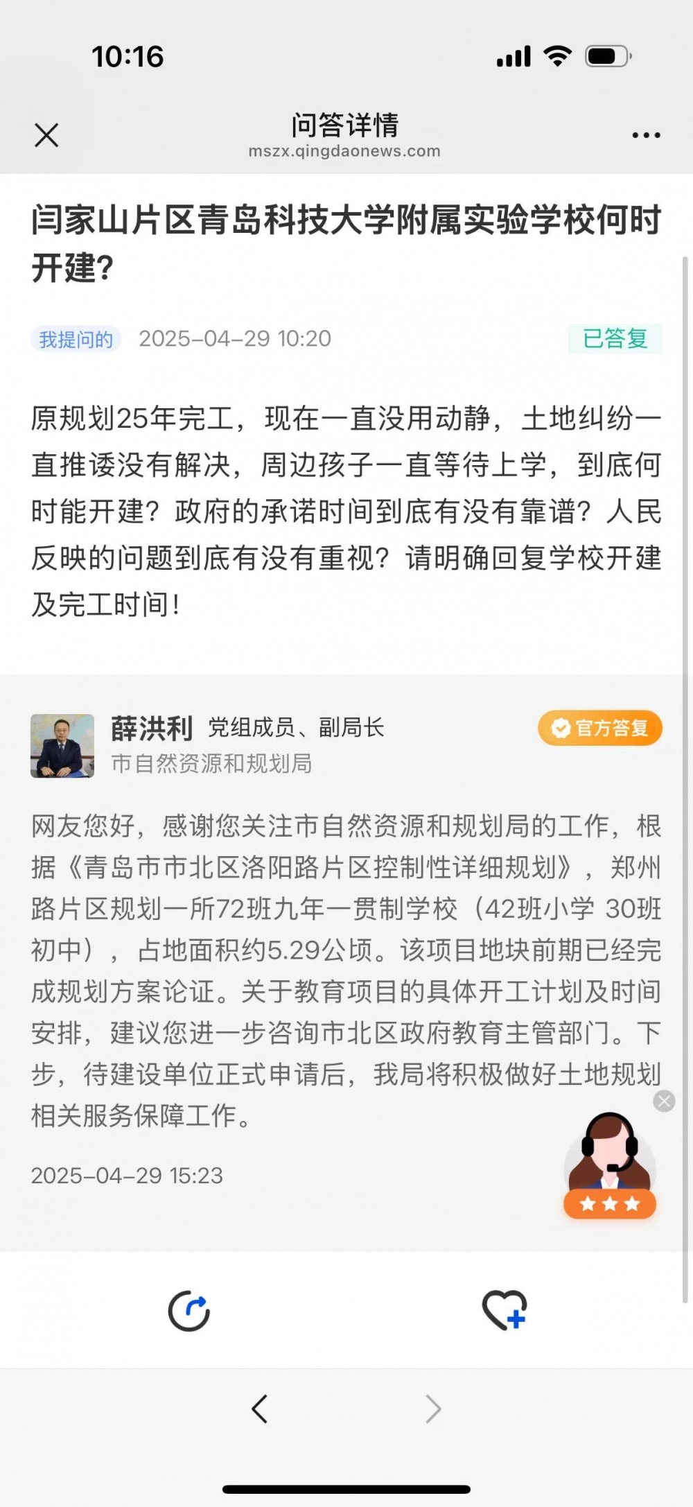 网民朋友您好,感谢您对教育工作的关注。据市规划部门公布洛阳片区控制性详细规划显示,您反映的青岛科技大学附属学校为规划新建学校,目前正在推进学校建设及土地整理前期工作,具备条件后将及时启动相关施工建设。学校建成后将及时交付教育系统管理使用。市教育局将持续密切关注该学校项目的建设进展,并督促市北区相关部门切实加快项目推进速度。