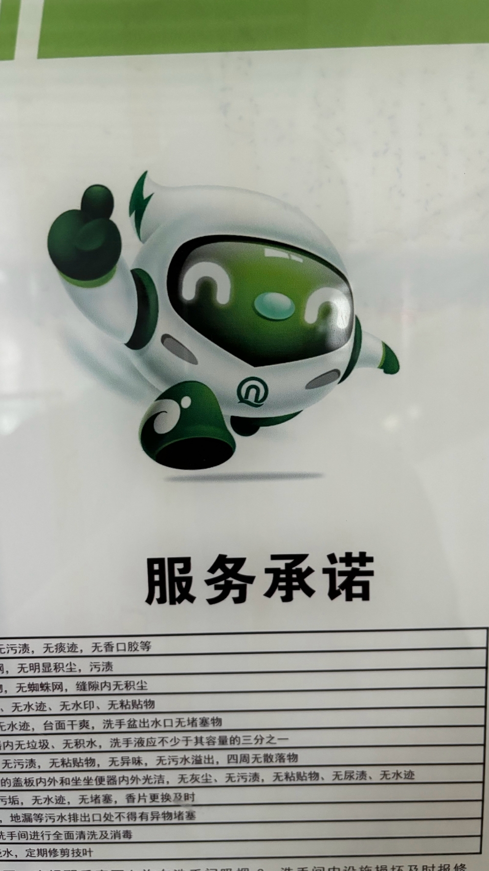 部分车站卫生间宣传栏的旧版非正式吉祥物身上的logo虽为新版企业logo,但是该吉祥物非当前公司使用宣传的旧版废弃吉祥物形象,不符合企业当前的IP形象“青小铁”宣传,也与线网其他线路卫生间宣传栏没有出现任何卡通形象不一致需要调整