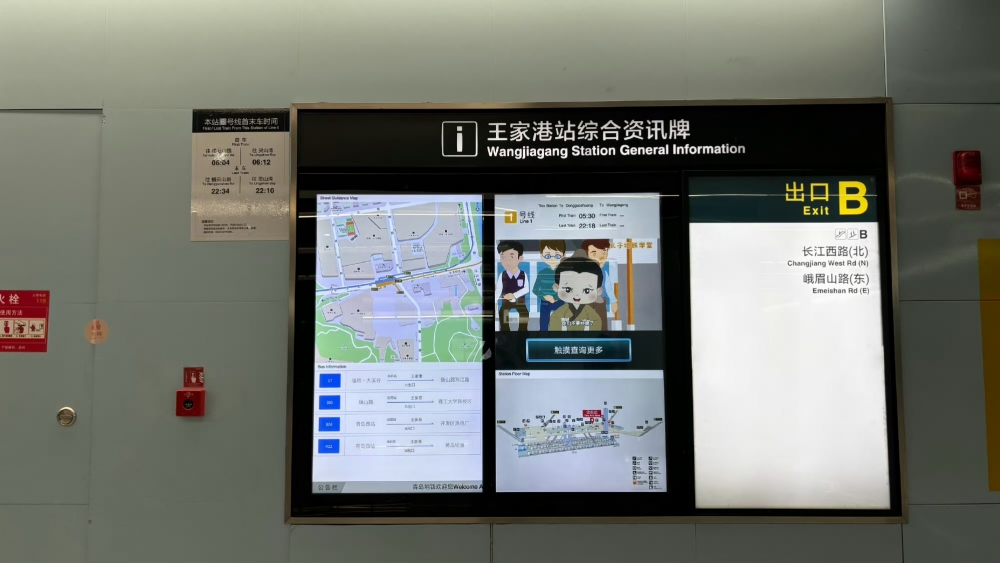 2.线网换乘站除了王家港站,其他换乘站(1/2/4/6/8/13号线) 线网换乘站除了王家港站,其他换乘站的站厅电子综合资讯牌首末车时间模块显示不了后续开通的换乘线路首末车时间信息存在误导和显示信息的不完整,不方便市民想要获取其他换乘线路首末车时间在站厅电子综合资讯牌上却看不到,应与出入口/站外电梯张贴显示所有换乘线路首末车时间保持一致。