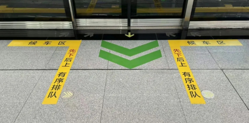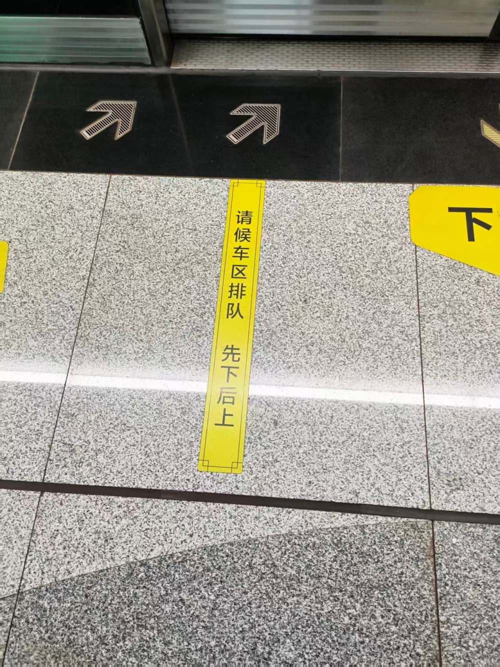1. 线网非最新版的站台黄色候车区地贴“请候车区排队”用词病句,属于口语化非正式书面规范用词,缺少介词“在”,用词存在瑕疵和不规范。