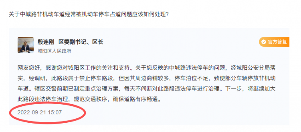 关于中城路非机动车道经常被机动车停车占道问题应该如何处理?